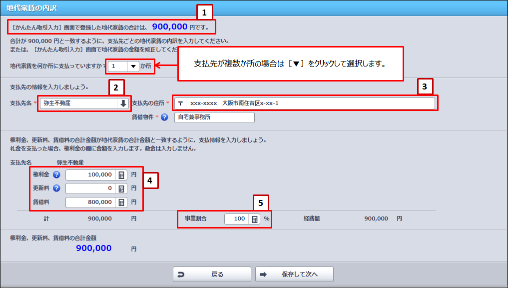 地代家賃の内訳の入力方法 やよいの白色申告 オンライン サポート情報