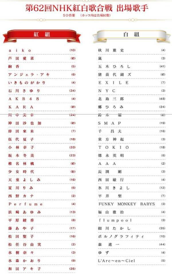 紅白 2011 出演者 発表 紅白歌合戦出場者