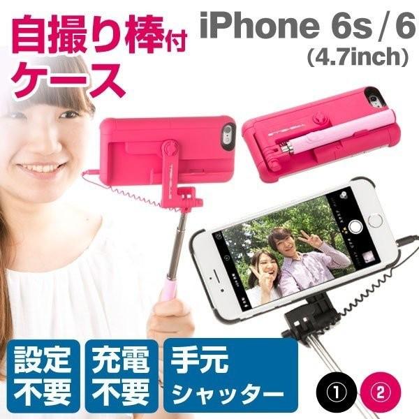 自撮りケース Iphone6s 6ケース セルフィースティック付きハードケース