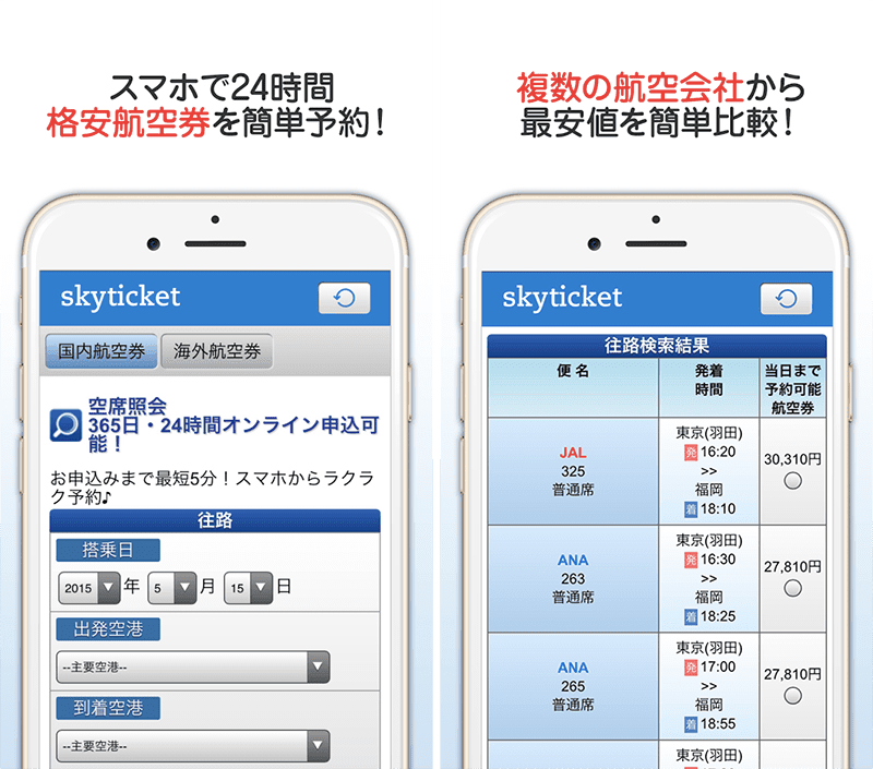 Lcc含め複数の航空会社の横断検索ができる国内 海外航空券予約アプリ Skyticket