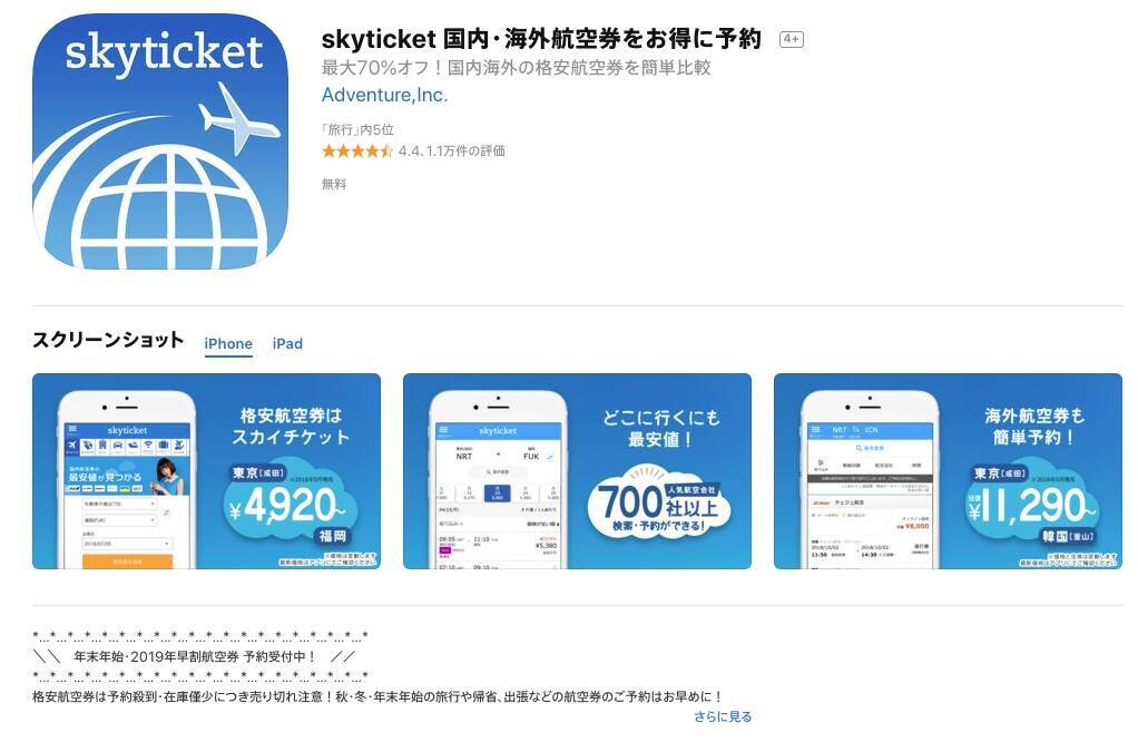 すぐわかる 格安航空券 ホテル予約アプリ スカイチケット Appliv