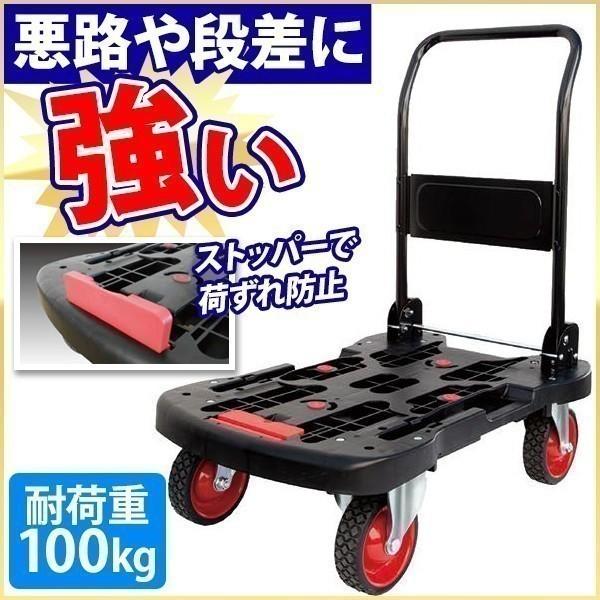 オフロード台車 折りたたみ 台車 ノーパンクタイヤ 耐荷重 100kg 頑丈 折り畳み 運搬台車 タフなカート 大径 キャスター 荷物滑落防止 ストッパー付き マスダショップ 通販 Paypayモール
