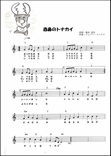 赤鼻のトナカイ 真っ赤なお鼻のトナカイさん の歌詞と楽譜コード Ami S Diary
