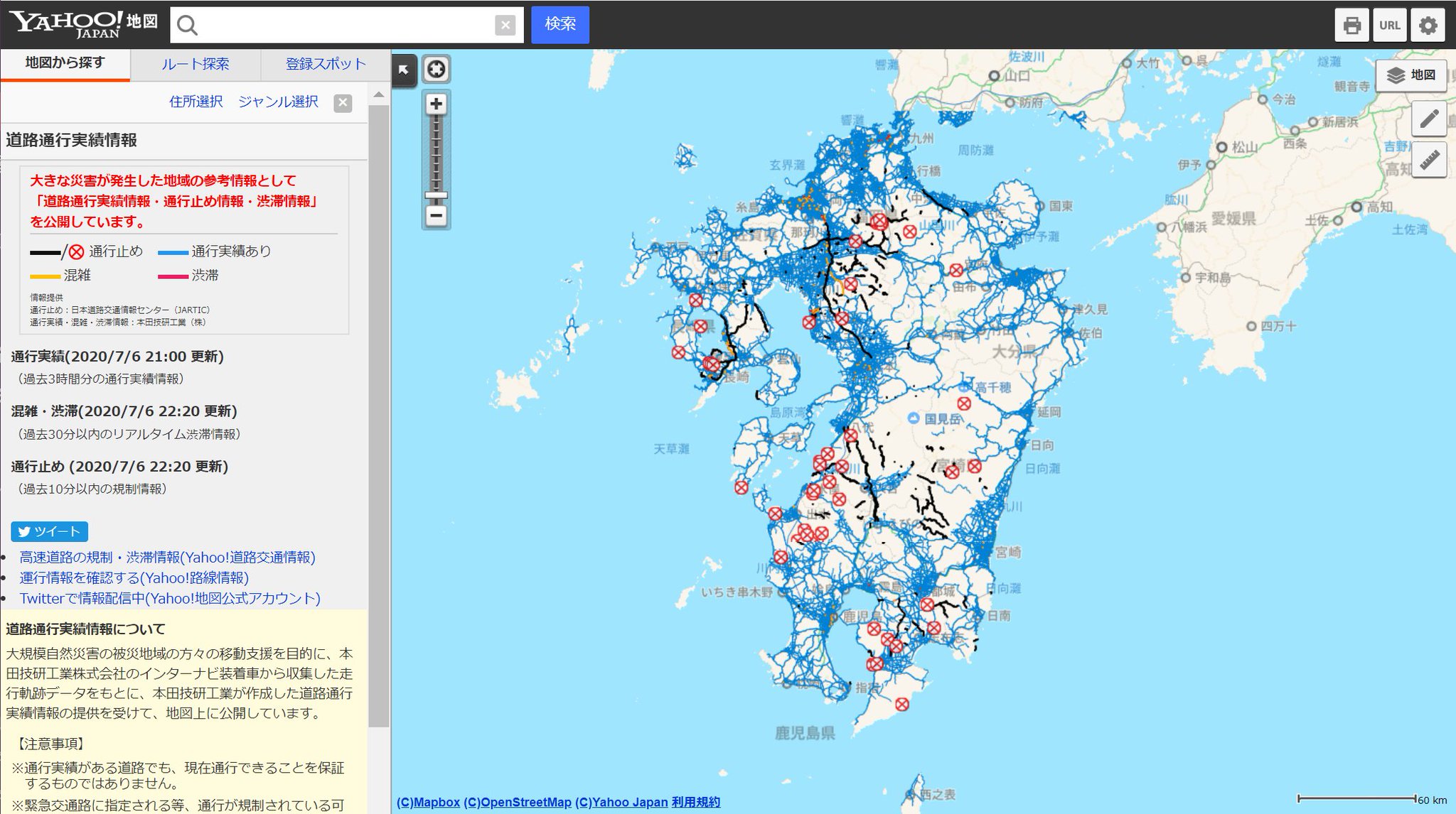 大雨の影響による九州北部の道路通行実績情報および混雑 渋滞情報を公開しました Yahoo 地図ブログ